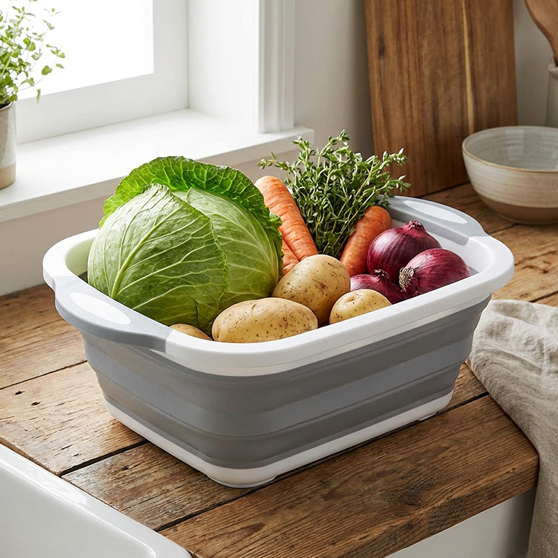 HELYTAKARÉKOS ÖSSZHÁTHATÓ VÁZ - Könnyen összecsukható, így mérete töredékére csökken. Tárolja fiókban vagy akassza fel, hogy konyhája rendezett maradjon. Tökéletes megoldás kis lakásokhoz, lakókocsikhoz vagy kempingezéshez.