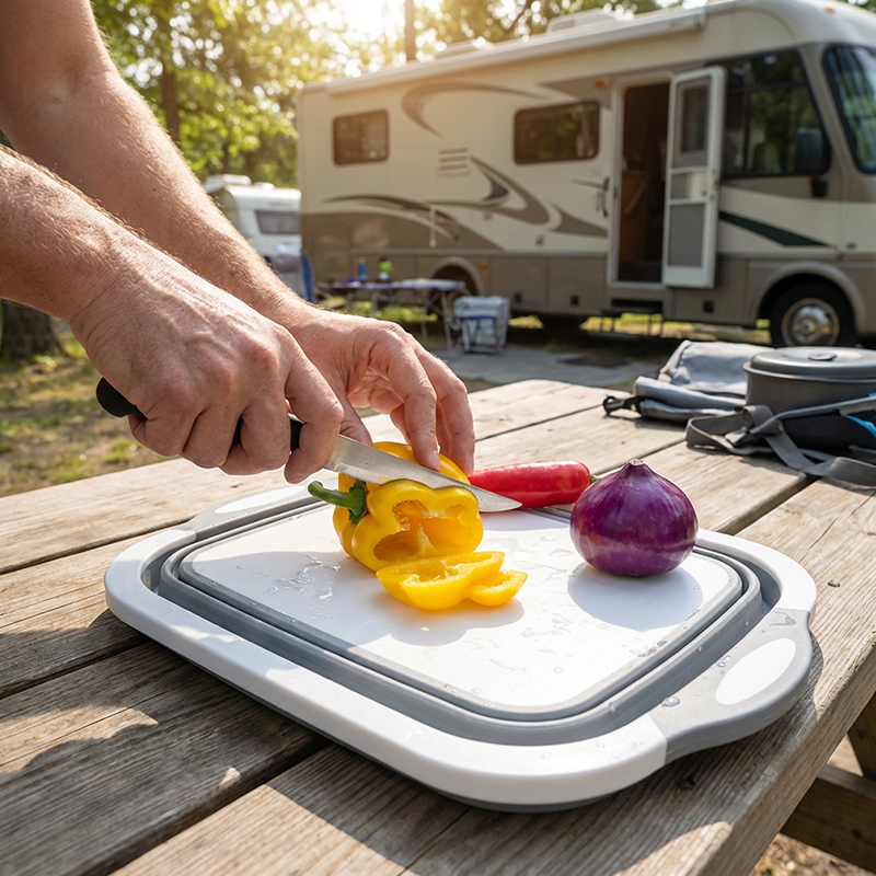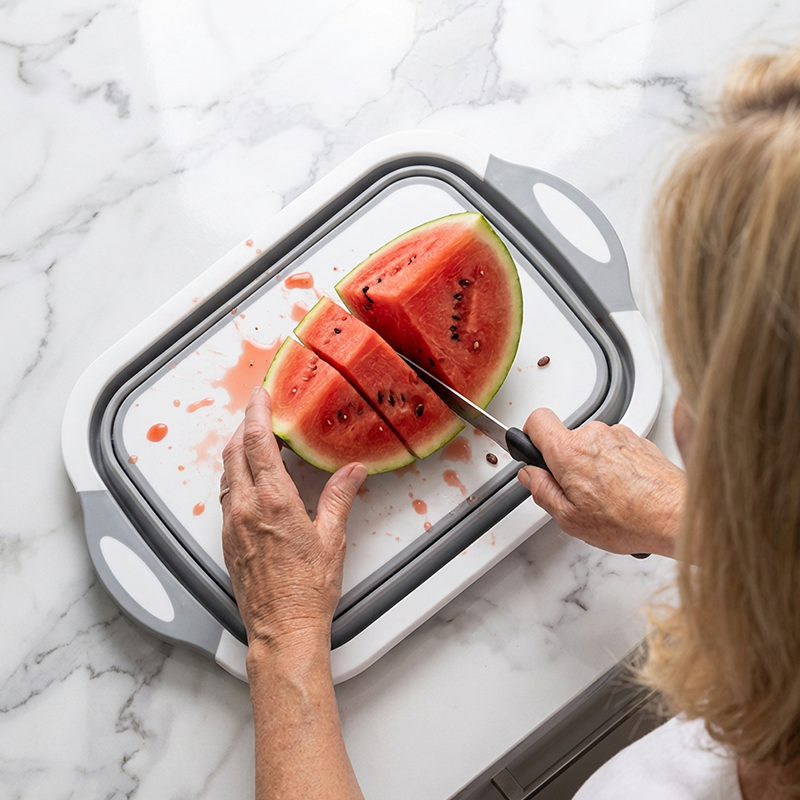 1 x 3 az 1-ben összecsukható vágódeszka és szűrőedény