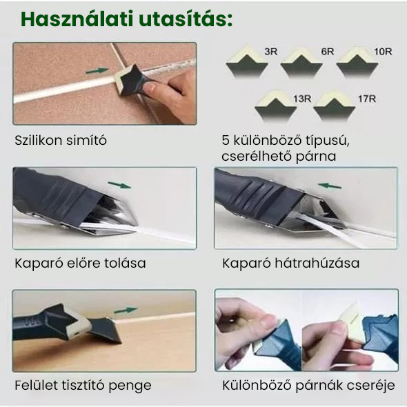 KönnyedĂ©n eltĂĄvolĂthatja a rĂ©gi fugĂĄzĂłanyagot, miközben egyenletesen simĂtja Ă©s kitölti a hĂ©zagokat!