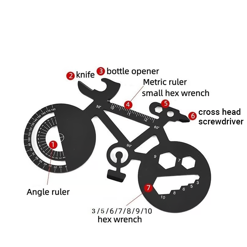 EGYEDI KERÉKPÁR FORMÁJA - Kreatív és stílusos kerékpár sziluettje kiemeli a tipikus multifunkciós szerszámok közül. Megkülönböztető megjelenése miatt gondos és praktikus ajándék lehet mindenki számára, aki szereti a kerékpározást vagy az egyedi kütyüket.