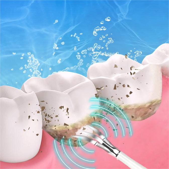 A nagyfrekvenciás rezgés technológia eltávolítja a fogkőket a fogakról és megoldja a legtöbb szájüregi problémát, még a legnehezebben elérhető területeken is, hogy fogai és ínye egészségesek maradjanak, például a fogkő, a fogbaktériumok, a fogkő és a foltok.