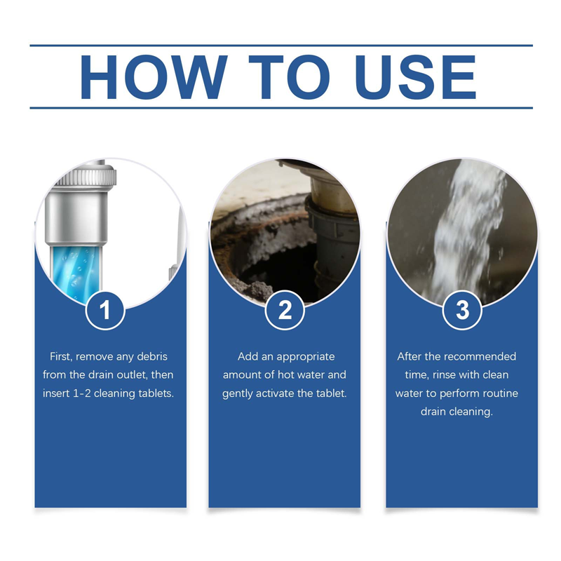 EGYSZERŰ ÉS GYORS MŰKÖDÉS - Nincs szükség bonyolult lépésekre vagy eszközökre. Csak dobjon egy tablettát a lefolyóba, öntsön rá vizet, és hagyja hatni. Ezzel időt és energiát takaríthat meg a rendszeres karbantartás és a vészhelyzetek esetén.