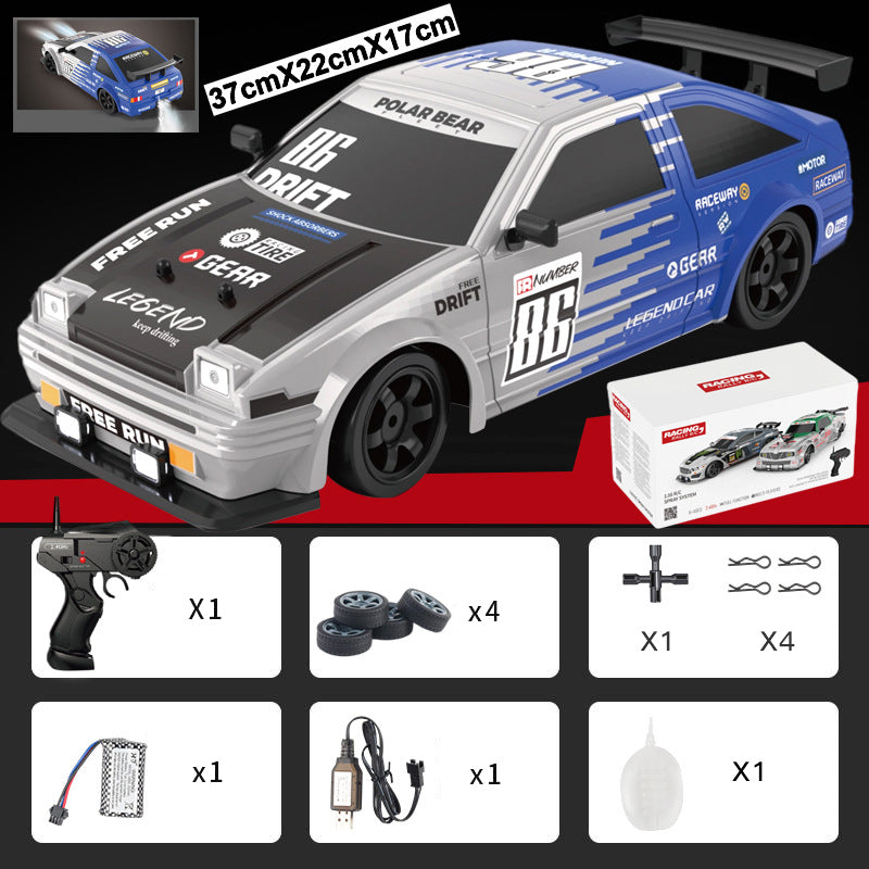 Az újratölthető RC Drift Racing játék tökéletes a versenyzés minden korosztály számára. Driftelj és versenyezz könnyedén ezzel a távirányítós autóval. Teljes értékű távirányítóval rendelkezik, és újratölthető akkumulátorral működik. Az autó erős motorral és áramvonalas karosszéria kialakítással rendelkezik, amely biztosan felkelti a figyelmet. Az autóhoz driftelésre tervezett gumikészlet is tartozik.