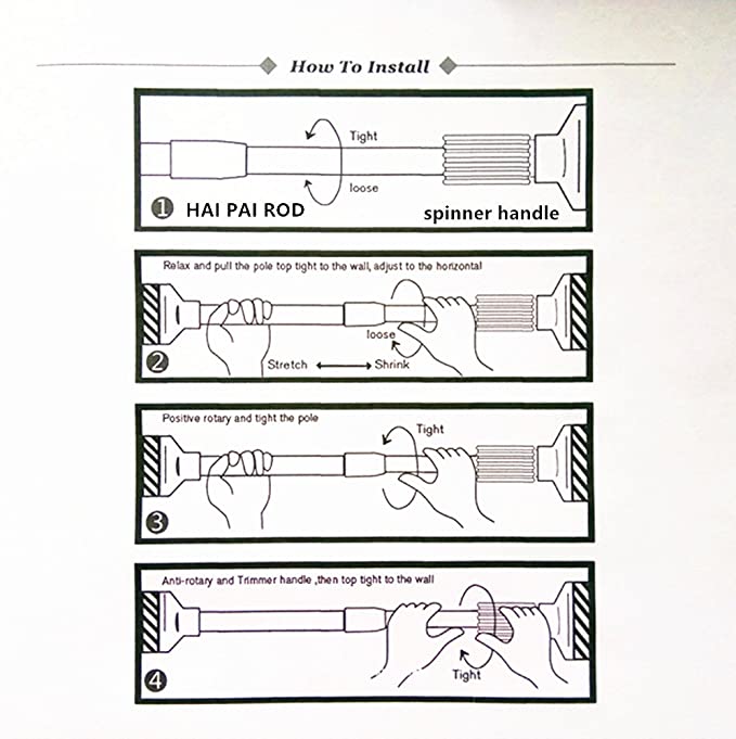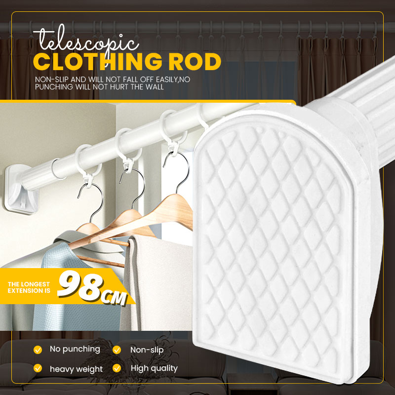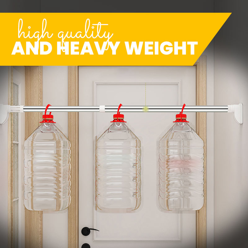 A teleszkópos rúd könnyen kezelhető, nincs szerszám, nincs fúrás, nem károsítja a falat; a rúd végén lévő csúszásmentes gumifej fokozza a súrlódást és simábbá teszi a használatát. Két méretben kapható: 50-75 cm; 58-98 cm.