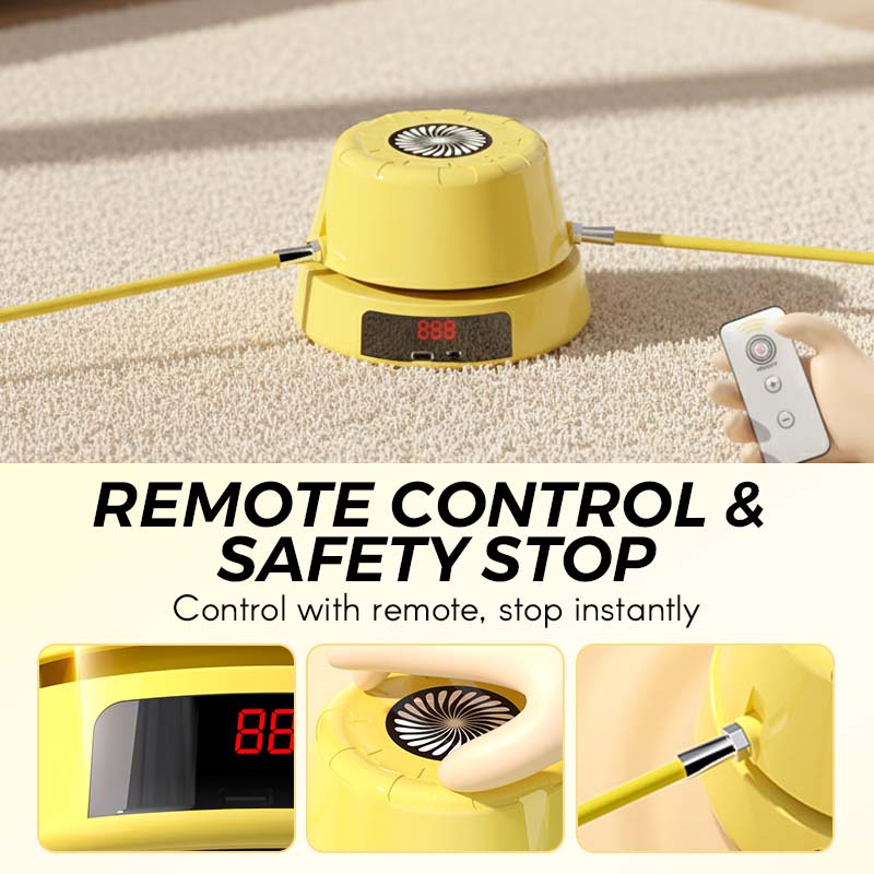 TĂĄvirĂĄnyĂtĂłs kĂ©nyelem Ă©s azonnali biztonsĂĄgi leĂĄllĂtĂĄs - Az intuitĂv tĂĄvirĂĄnyĂtĂłval könnyedĂ©n szabĂĄlyozhatja az edzĂ©s tempĂłjĂĄt, beĂĄllĂthatja a sebessĂ©get vagy szĂŒneteltetheti az edzĂ©st tĂĄvolrĂłl. A biztonsĂĄg Ă©rdekĂ©ben egyszerƱen lĂ©pjen rĂĄ a kĂ©szĂŒlĂ©k felsĆ terĂŒletĂ©re, Ă©s az intelligens azonnali leĂĄllĂtĂĄsi mechanizmus aktivĂĄlĂłdik. Ez a kialakĂtĂĄs biztosĂtja, hogy a kötĂ©l forgĂĄsa azonnal leĂĄll, hatĂ©konyan megelĆzve a baleseteket Ă©s nyugalmat adva Ănnek.