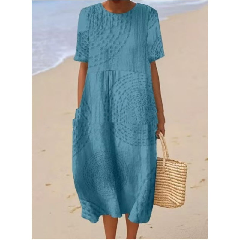 LAZA, LAZA SZABÁS: A kényelem érdekében tervezett midi ruha laza, laza szabású, könnyű mozgást és légáteresztő képességet biztosít, így tökéletes alkalmi, mindennapi viseletre.