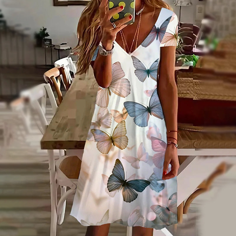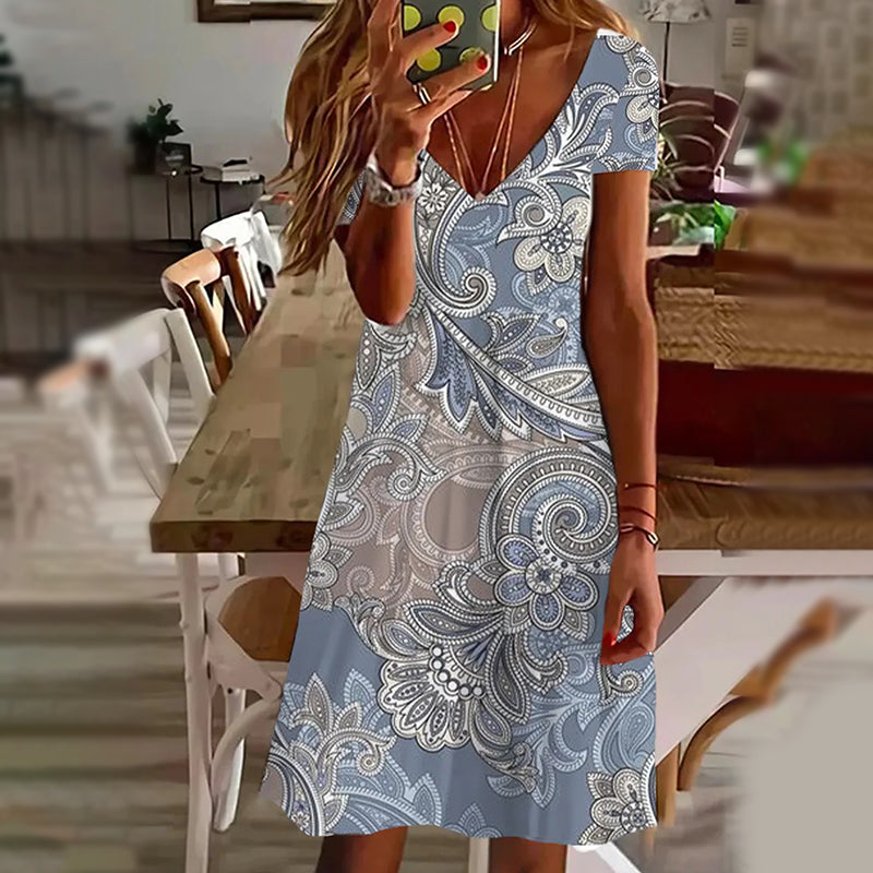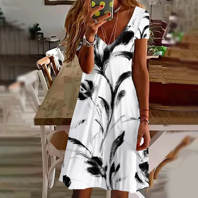 A csomag tartalma: 1:1* Női elegáns nyomtatott V-nyakú ruhák